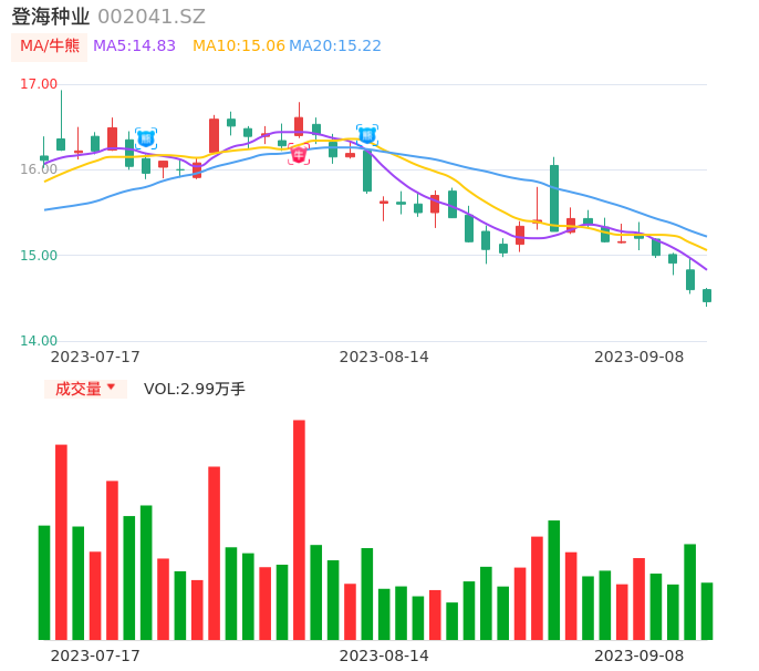 值得注意的是:2023年09月太平洋的程晓东分析师,首次发布关于登海种业的研究报告,标题为:登海种业(002041)中报点评:短期成本上升业绩承压 中长期发展前途可期。