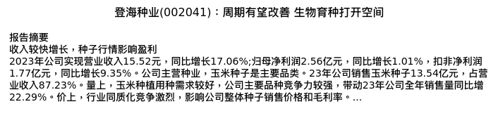 值得注意的是:2024年05月中航证券的彭海兰/陈翼分析师,首次发布关于登海种业的研究报告,标题为:登海种业(002041):周期有望改善 生物育种打开空间。