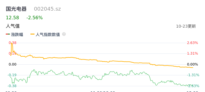 10月23日,国光电器收报12.58,股价涨幅-2.56%,成交金额3.49亿,换手率4.84%。
