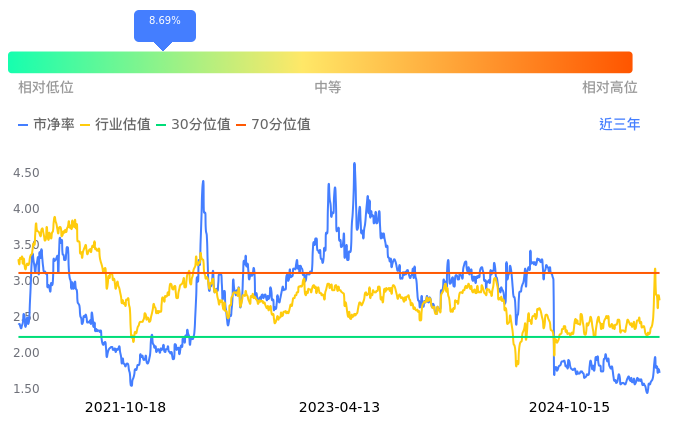 国光电器当前市净率PB为1.72,在所属的消费电子中,市净率PB排7,前五名分别为奥尼电子市净率1.22、徕木股份市净率1.48、奕东电子市净率1.49、奥海科技市净率1.55、得润电子市净率1.62。国光电器当前市净率PB为1.72,超过近3年8.69%的历史数据。