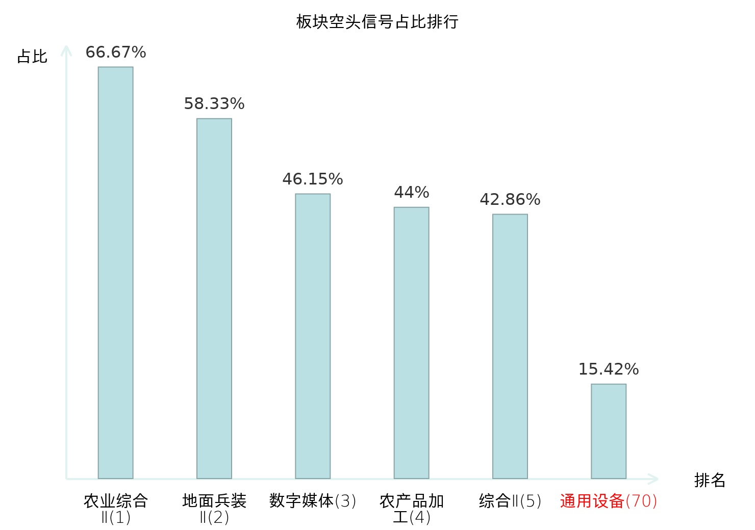 全市场所有行业板块中主力空头信号占比排名中,农业综合Ⅱ板块位居第一。医药商业板块名次提升最快,较昨日上升121位。