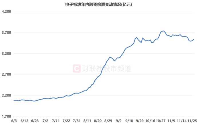 注:电子板块近期融资余额变动情况(截至11月26日数据)