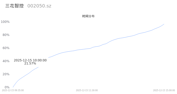 002050三花智控2025年12月15日成交104.41万手,成交金额45.94亿,相较昨日缩量29.18万手,换手率2.83%,成交清淡。