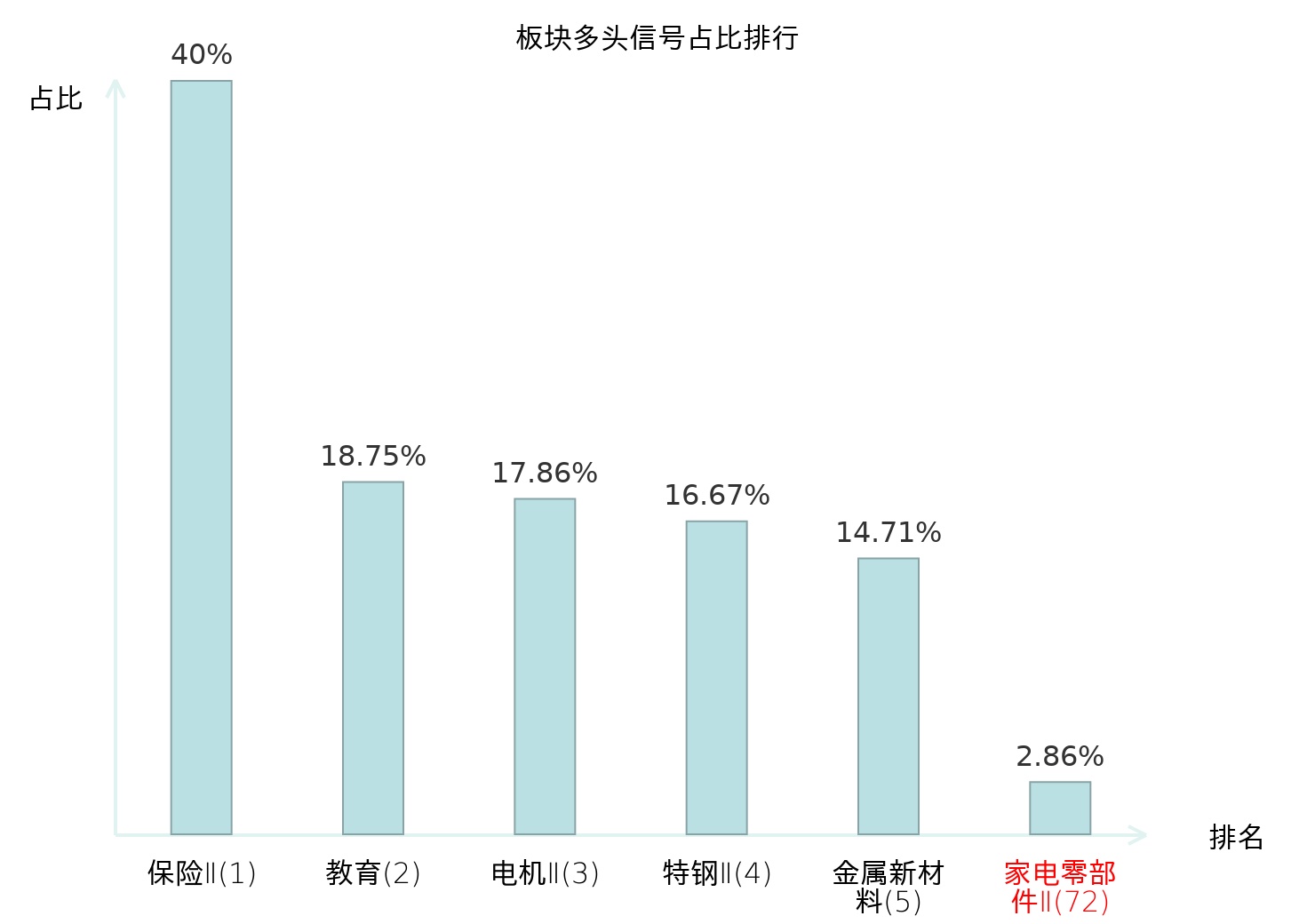全市场所有行业板块中主力多头信号占比排名中,保险Ⅱ板块位居第一。保险Ⅱ板块名次提升最快,较昨日上升124位。