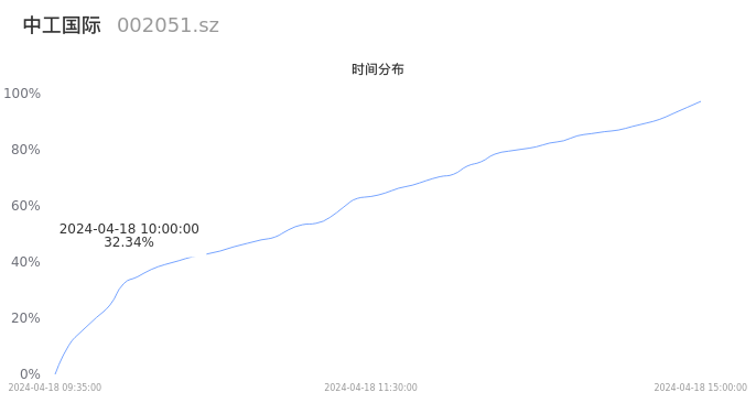 002051中工国际2024年04月18日成交36.91万手,成交金额2.96亿元,相较昨日缩量18.32万手,换手率2.98%,成交清淡。
