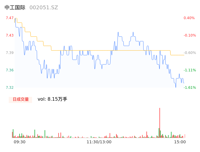 04月12日,中工国际收报7.35,股价涨幅-1.21%,成交金额6020.87万元,换手率0.66%。