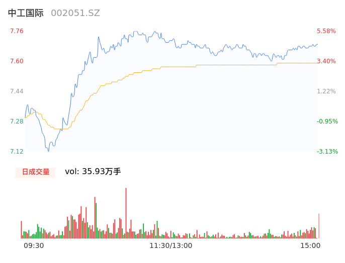 04月15日,中工国际收报7.70,股价涨幅4.76%,成交金额2.73亿元,换手率2.90%。