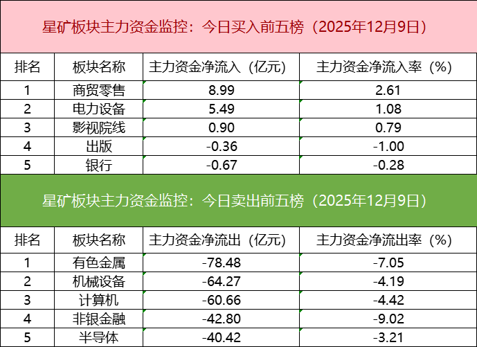 从主力板块资金监控数据来看,商贸零售板块主力资金净流入居首。