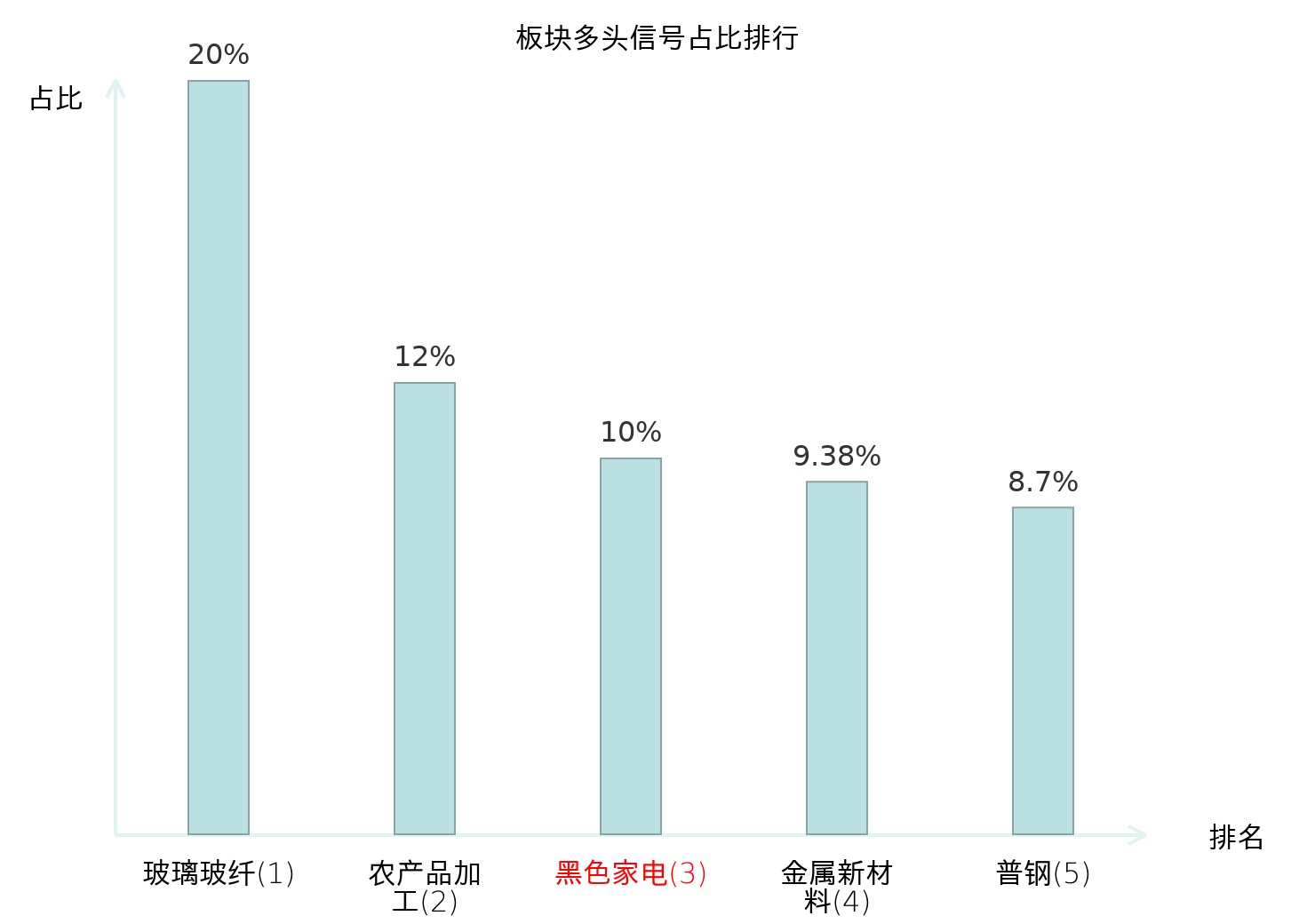 全市场所有行业板块中主力多头信号占比排名中,玻璃玻纤板块位居第一。玻璃玻纤板块名次提升最快,较昨日上升108位。