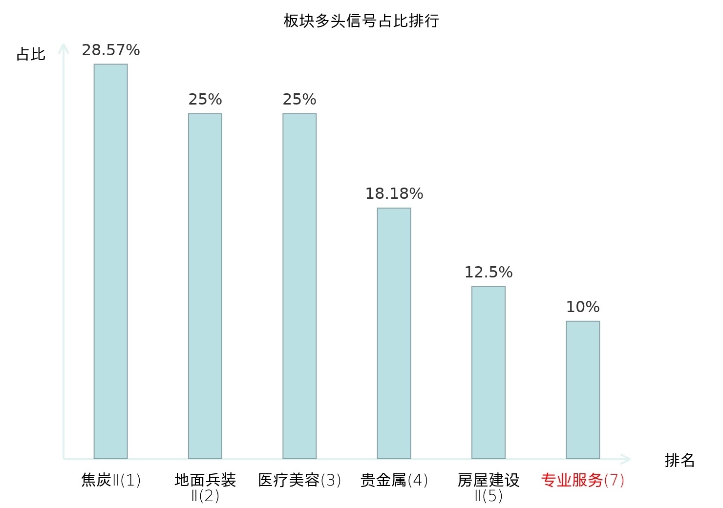 全市场所有行业板块中主力多头信号占比排名中,焦炭Ⅱ板块位居第一。医疗美容板块名次提升最快,较昨日上升124位。