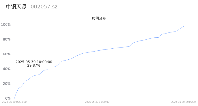 002057中钢天源2025年05月30日成交13.45万手,成交金额1.09亿,相较昨日缩量1.91万手,换手率1.78%,成交清淡。
