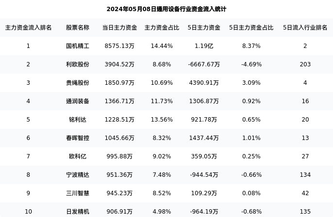 从主力资金流向来看,通用设备行业今日主力资金流入46.15亿元,在所有申万二级行业中排名:63/131。