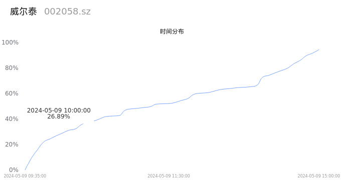 002058威尔泰2024年05月09日成交1.66万手,成交金额1683.50万元,相较昨日缩量3607手,换手率1.16%,成交清淡。