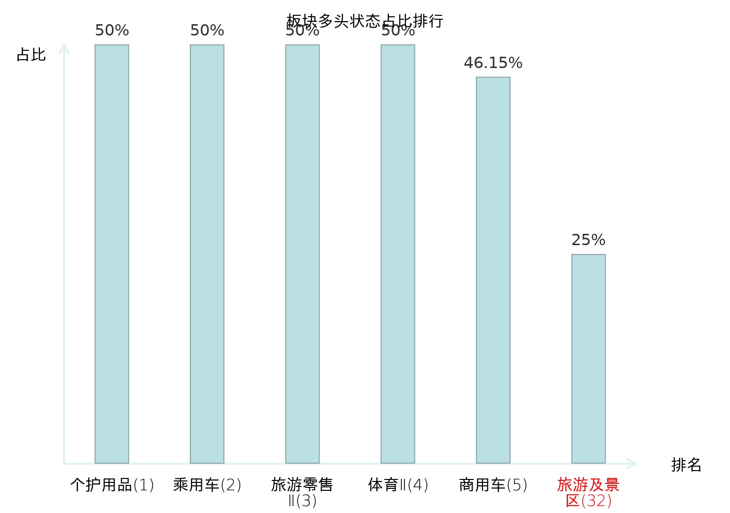 全市场所有行业板块中主力多头状态占比排名中,个护用品板块位居第一。林业Ⅱ板块名次提升最快,较昨日上升94位。