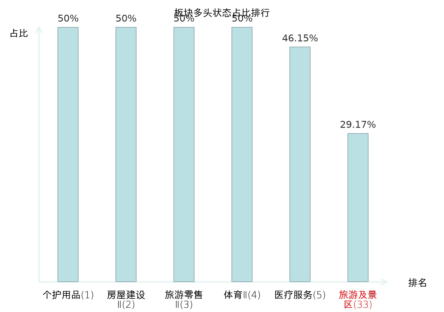 全市场所有行业板块中主力多头状态占比排名中,个护用品板块位居第一。影视院线板块名次提升最快,较昨日上升56位。