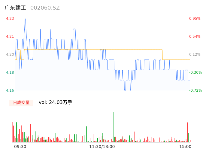 04月18日,广东建工收报4.18,股价涨幅-0.24%,成交金额1.01亿元,换手率1.54%。