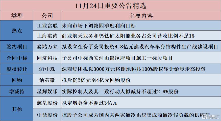 格隆汇公告精选︱广电计量:拟投资建设广电计量西南(成都)检测基地;工业富联:未向市场下调第四季度利润目标