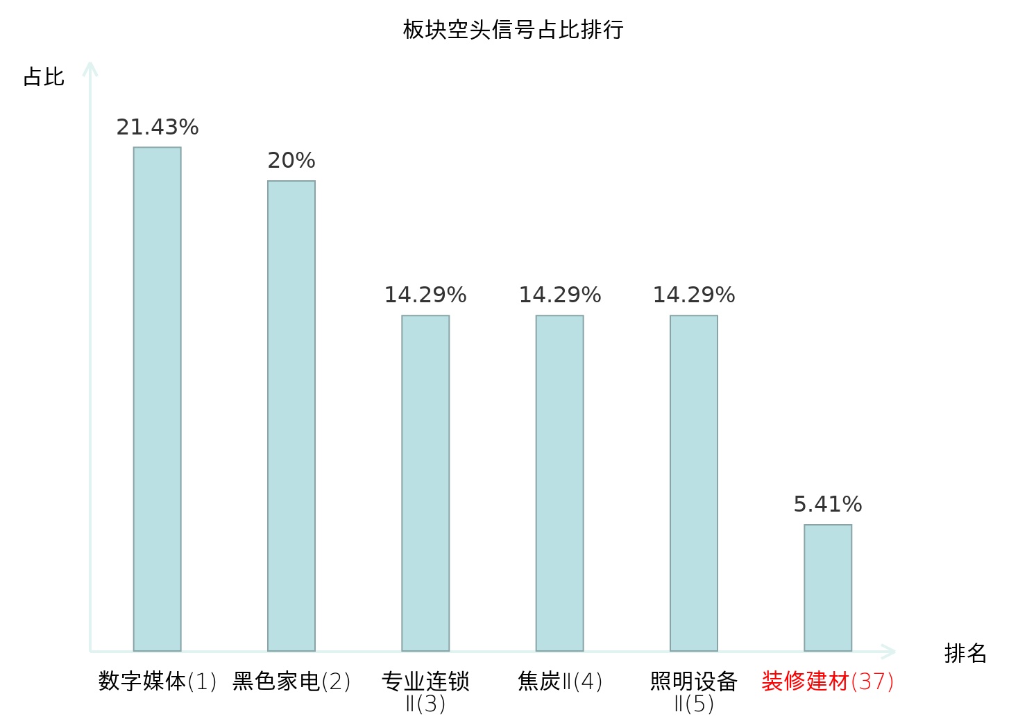 全市场所有行业板块中主力空头信号占比排名中,数字媒体板块位居第一。装修装饰Ⅱ板块名次提升最快,较昨日上升110位。