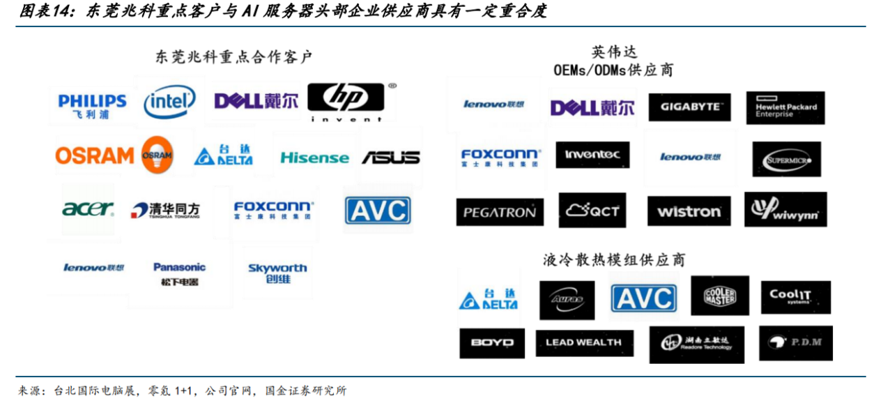 东莞兆科积累了超1500家企业合作经验,服务过AVC、台达、富士康、英特尔、华硕等国内外知名企业,其客户关系与英伟达服务器机柜供应商存在高度重合。