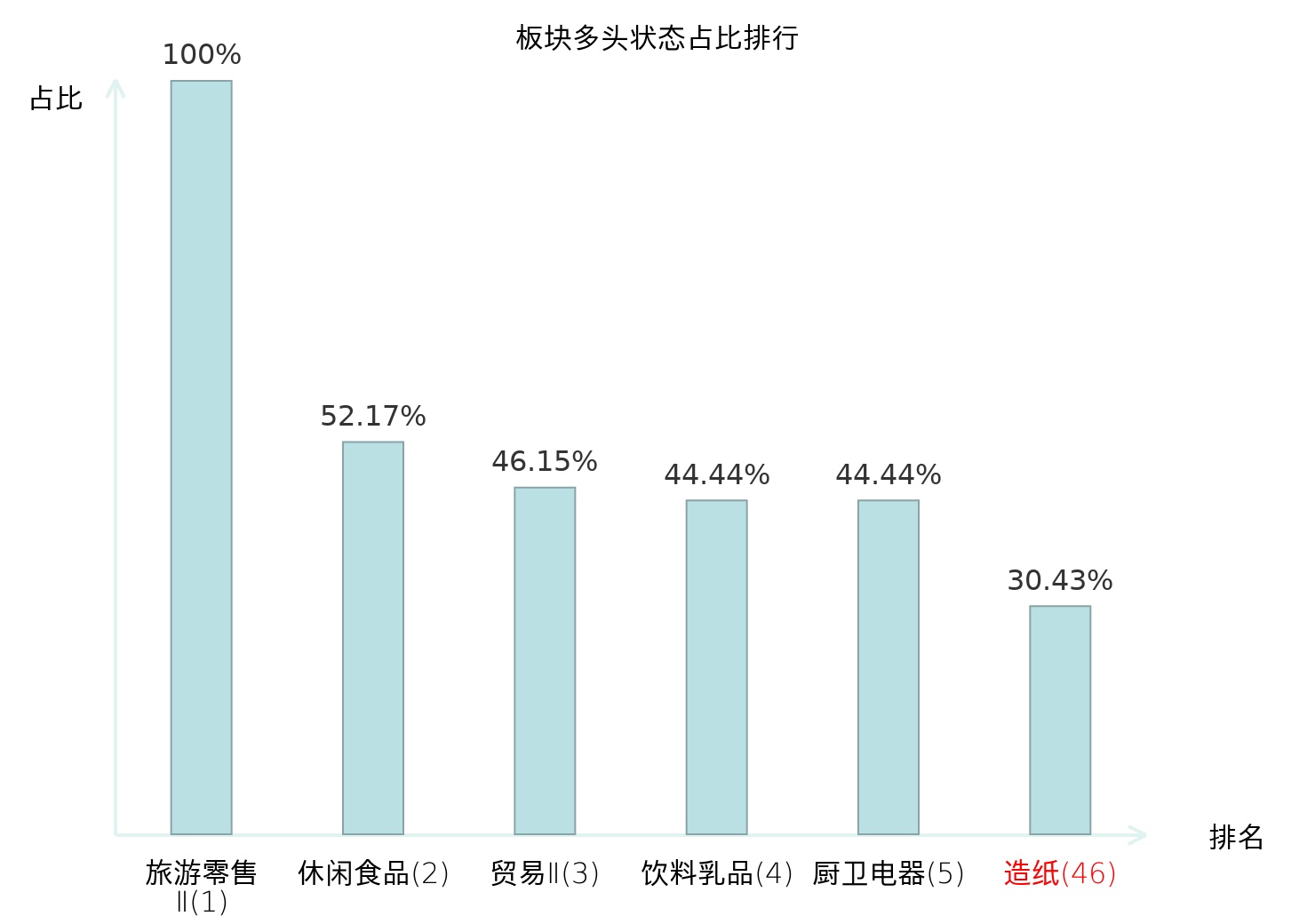 从主力宝信号数据分析,景兴纸业所属的造纸板块中共有7只股票处于主力多头状态,主力多头状态占比在全行业中排名第46位,较昨日上升11位。排名的提升表明主力对造纸板块整体看多意愿有所增强,这为投资者提供了重要的市场情绪参考。在全市场所有行业板块中,旅游零售Ⅱ板块的主力多头状态占比最高,位居第一;乘用车板块名次提升最快,较昨日上升91位。这些变动反映了不同行业间的主力资金动向,为投资者理解市场趋势提供了有价值的信息。