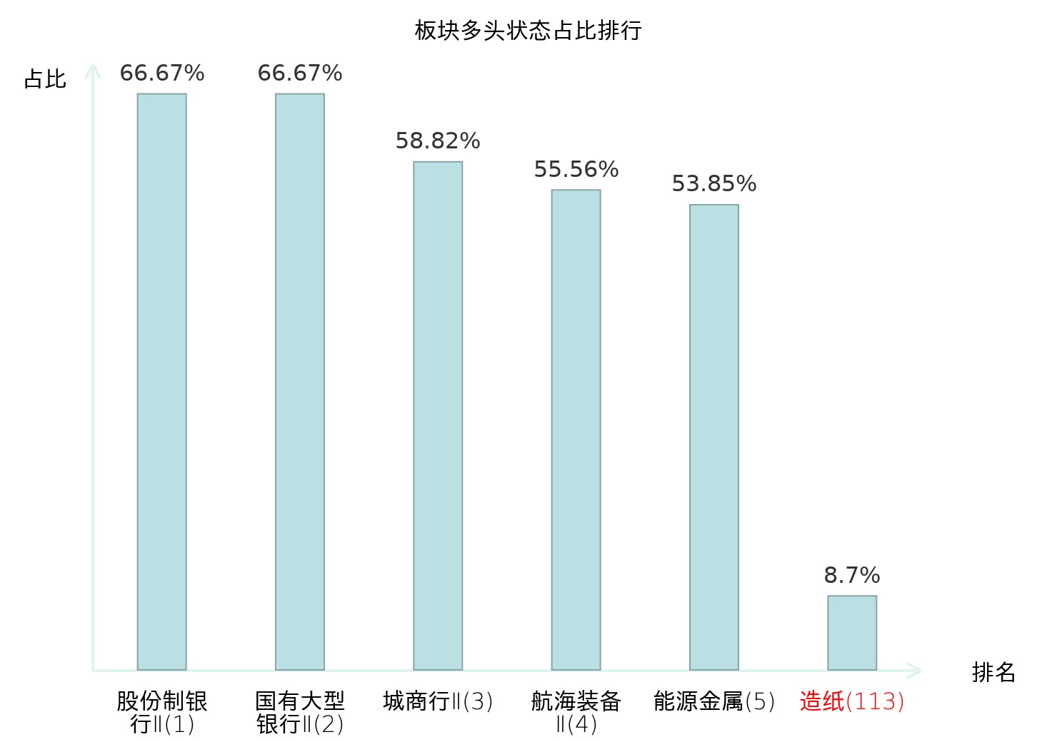 从主力宝信号数据分析,景兴纸业所属的造纸板块中共2只股票处于主力多头状态,主力多头状态占比在全行业中排名第113位,较昨日下降1位;排名越高说明主力对于板块整体看多意愿越强;此次微幅下降可能反映主力对该板块态度出现轻微调整。全市场所有行业板块中主力多头状态占比排名中,股份制银行Ⅱ板块位居第一;渔业板块名次提升最快,较昨日上升61位;这些变动为投资者观察主力资金在不同行业间的分布特征及潜在趋势提供了客观依据。