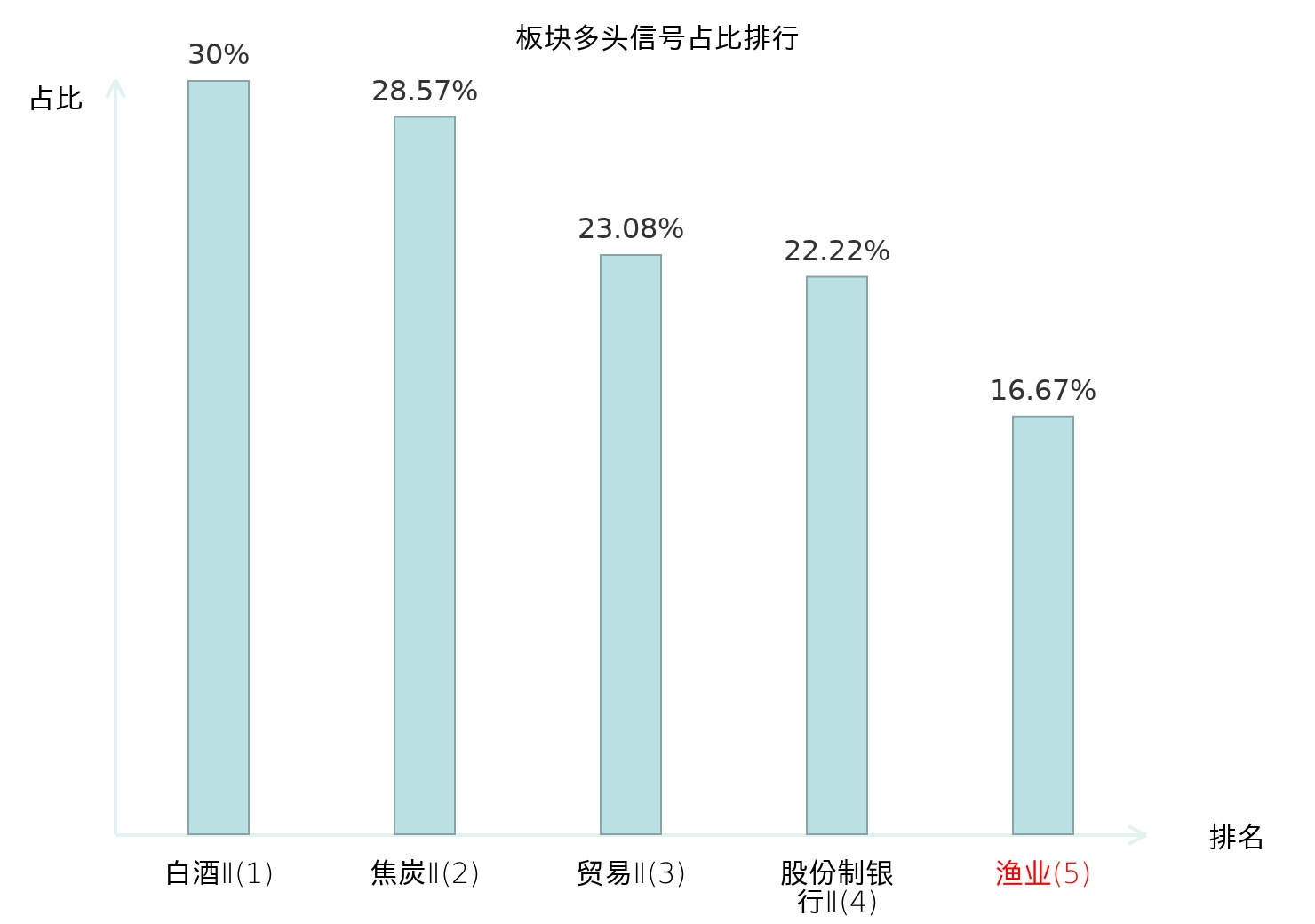全市场所有行业板块中主力多头信号占比排名中,白酒Ⅱ板块位居第一。焦炭Ⅱ板块名次提升最快,较昨日上升119位。