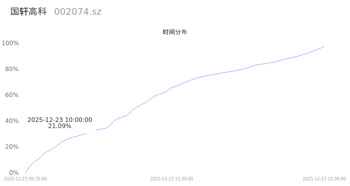 002074国轩高科2025年12月23日成交56.29万手,成交金额22.16亿,相较昨日放量24.95万手,换手率3.24%,成交清淡。