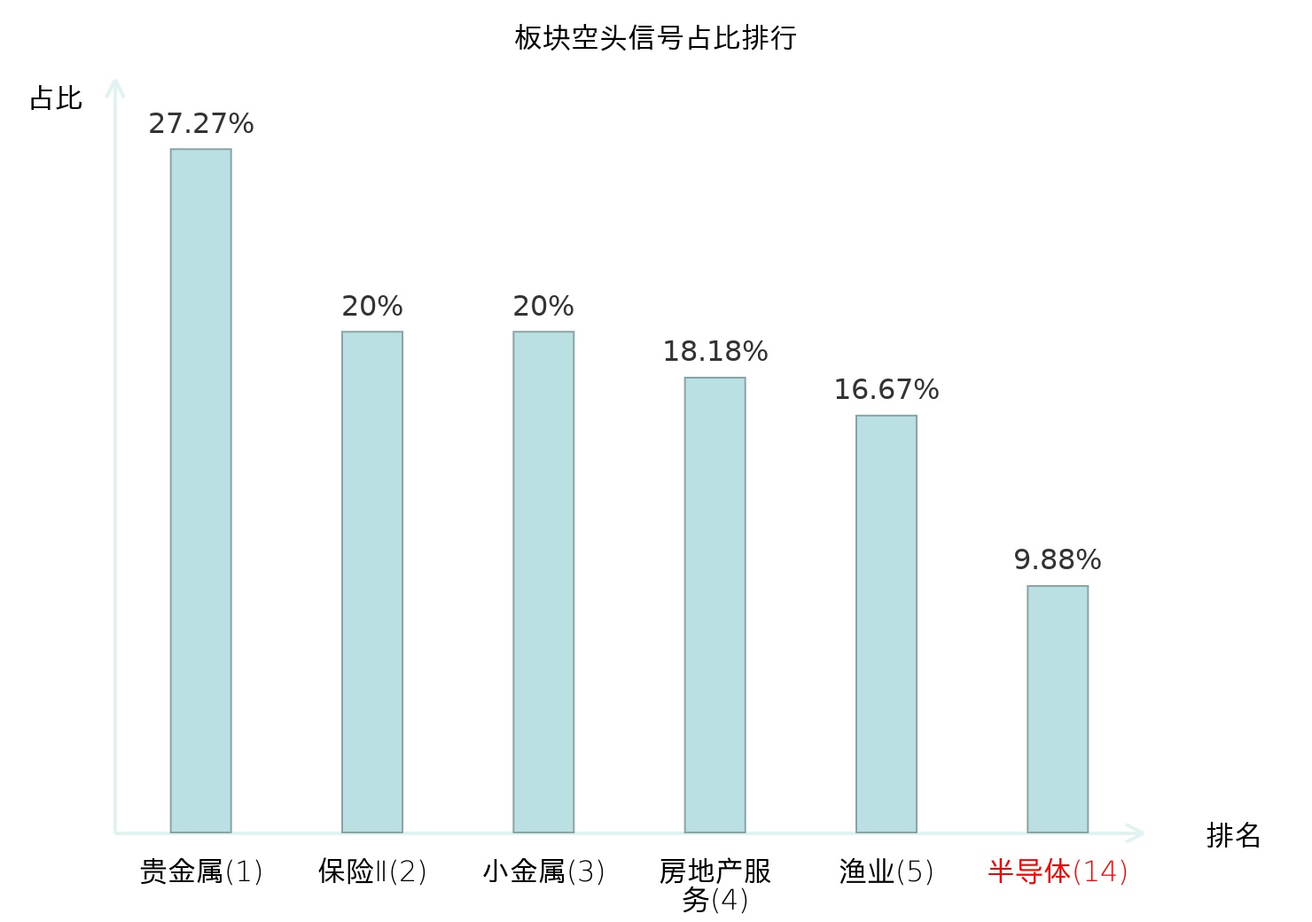 从主力宝信号数据分析,大港股份所属的半导体板块中共17只股票发出主力空头信号,主力空头信号占比在全行业中排名第14位,较昨日上升54位。较高的排名表明主力对于该板块整体看空意愿较强,此次排名大幅上升可能反映了主力对该板块态度的明显转向。全市场所有行业板块中主力空头信号占比排名中,贵金属板块位居第一。小金属板块名次提升最快,较昨日上升117位。这些变动揭示了不同行业间主力资金倾向的分化,为投资者评估市场风险偏好提供了客观依据。
