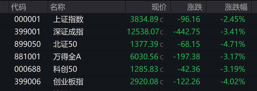 A股:截止收盘,沪指跌2.45%,深成指跌3.41%,创业板指跌4.02%。