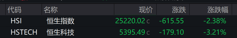港股:截至收盘,恒生指数收跌2.38%,恒生科技指数收跌3.21%。