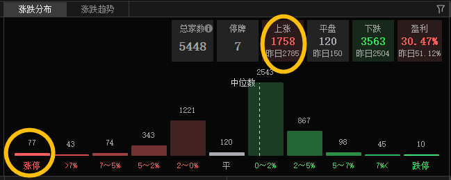 红盘个股1700+,涨停77只,跌停10只,超45只跌超7%,虽然指数跌幅收窄,但是整体来看今天的亏钱效应不小。