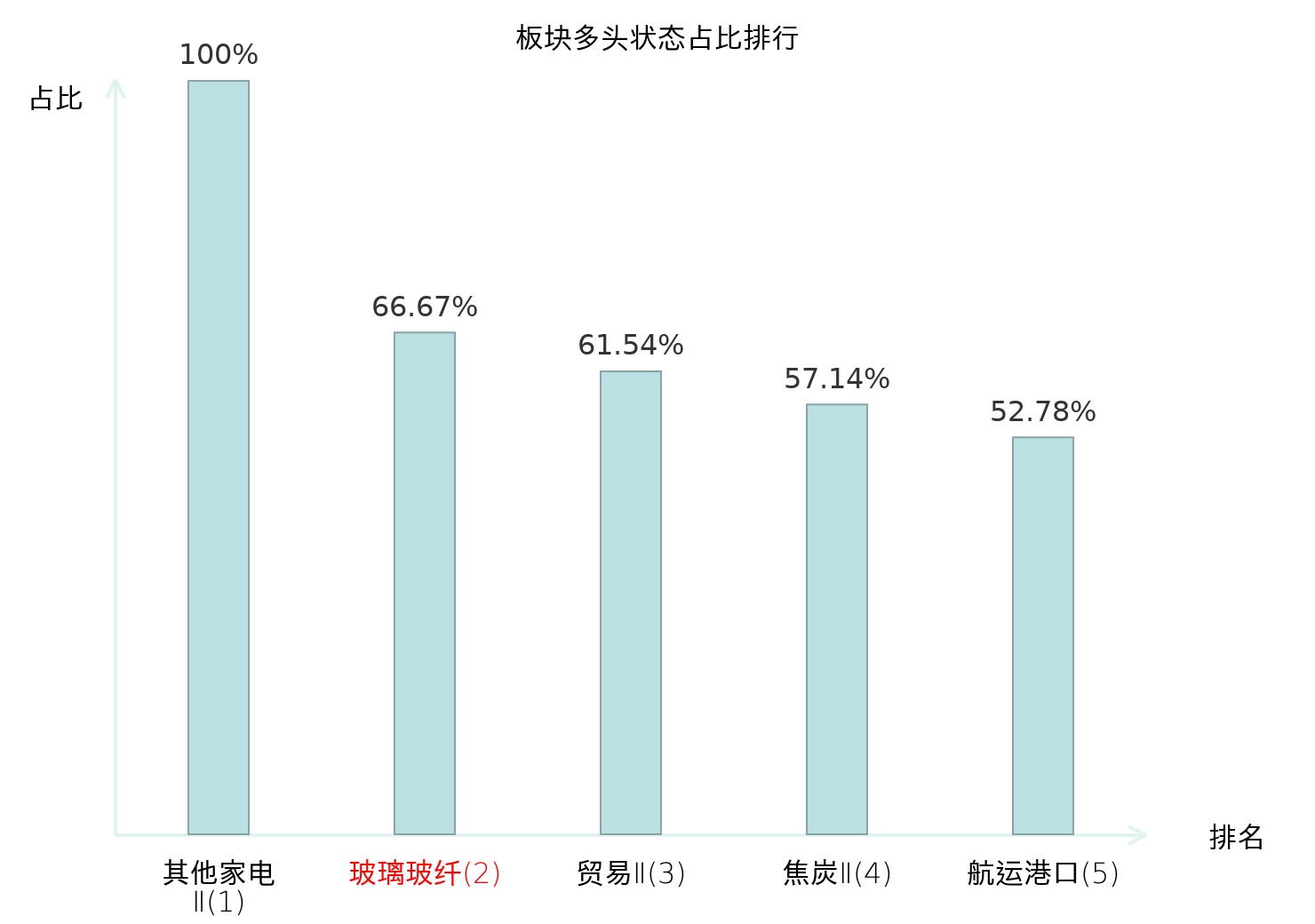 全市场所有行业板块中主力多头状态占比排名中,其他家电Ⅱ板块位居第一。影视院线板块名次提升最快,较昨日上升62位。