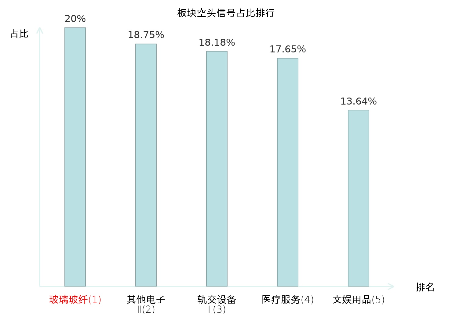 全市场所有行业板块中主力空头信号占比排名中,玻璃玻纤板块位居第一。医疗服务板块名次提升最快,较昨日上升126位。