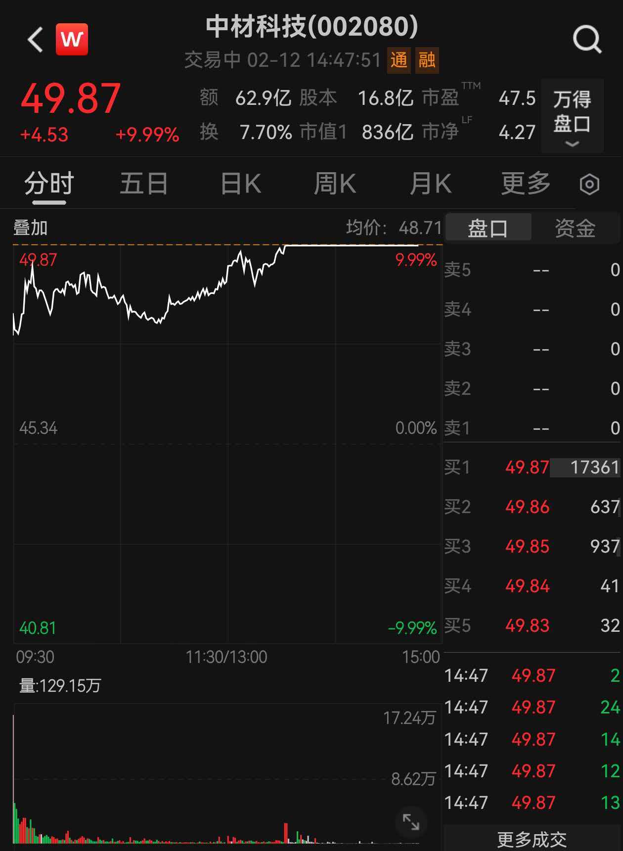 上证报中国证券网讯2月12日,中材科技盘中涨停,收获2连板。