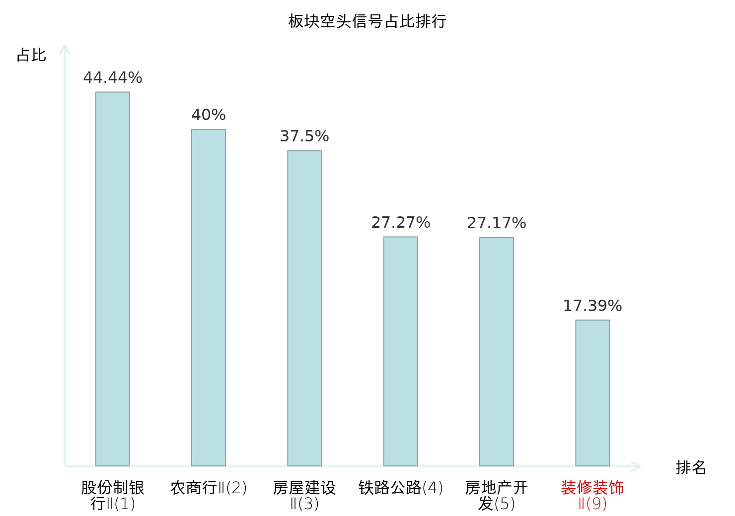 全市场所有行业板块中主力空头信号占比排名中,股份制银行Ⅱ板块位居第一。化学原料板块名次提升最快,较昨日上升118位。