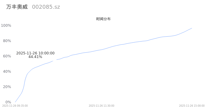 002085万丰奥威2025年11月26日成交29.17万手,成交金额4.61亿,相较昨日缩量4131手,换手率1.37%,成交清淡。
