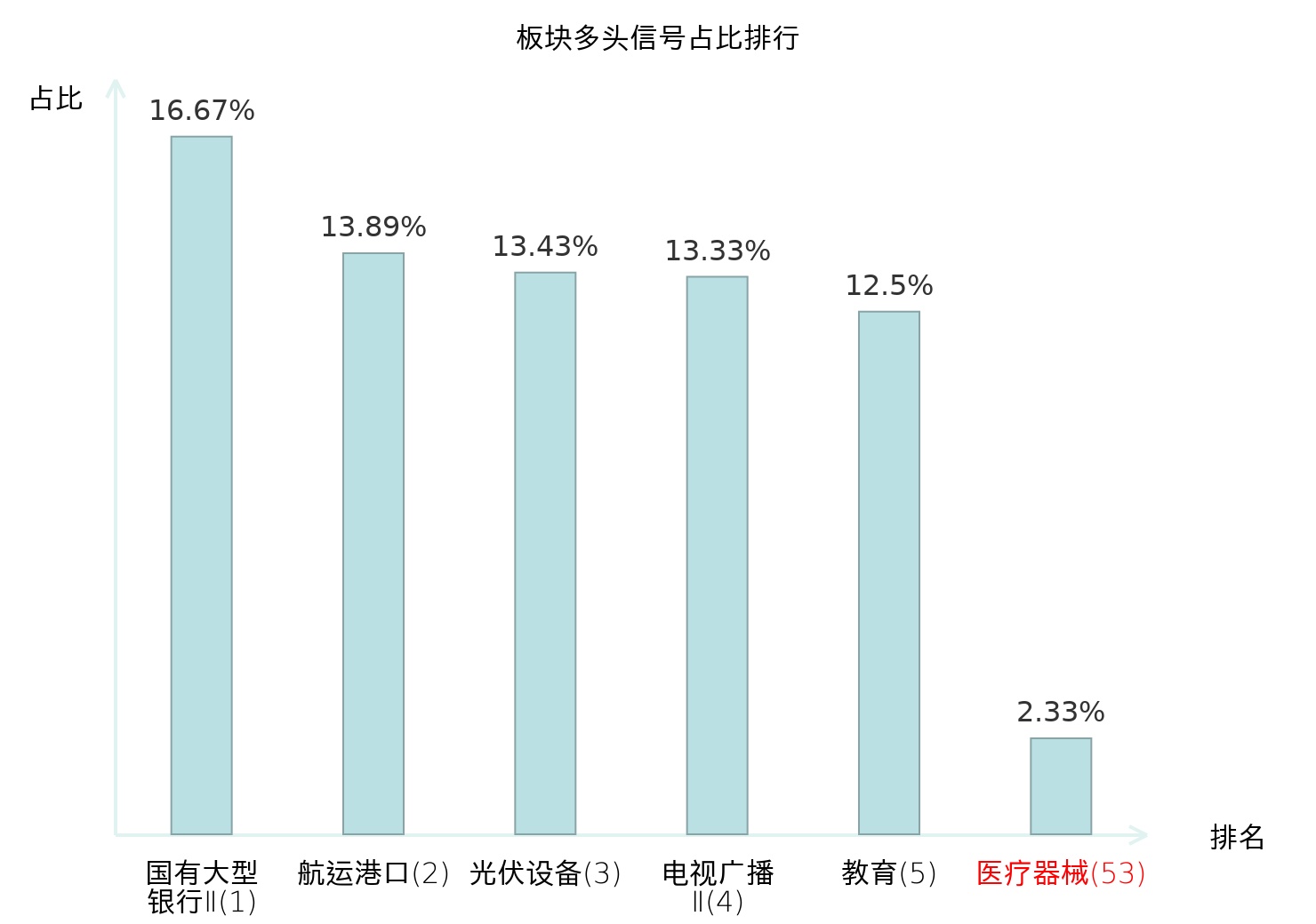 从主力宝信号数据分析,东方海洋所属的医疗器械板块中共有3只股票发出主力多头信号,主力多头信号占比在全行业中排名第53位,较昨日下降6位。排名较高表明主力当日买入意愿较强,此次排名下降可能反映了主力对该板块态度的一些微调。全市场所有行业板块中,国有大型银行Ⅱ板块的主力多头信号占比最高,位居第一;国有大型银行Ⅱ板块名次提升最快,较昨日上升124位。这些变动揭示了不同行业间主力资金动向的趋势,为投资者提供了关于市场情绪和潜在投资机会的重要线索。