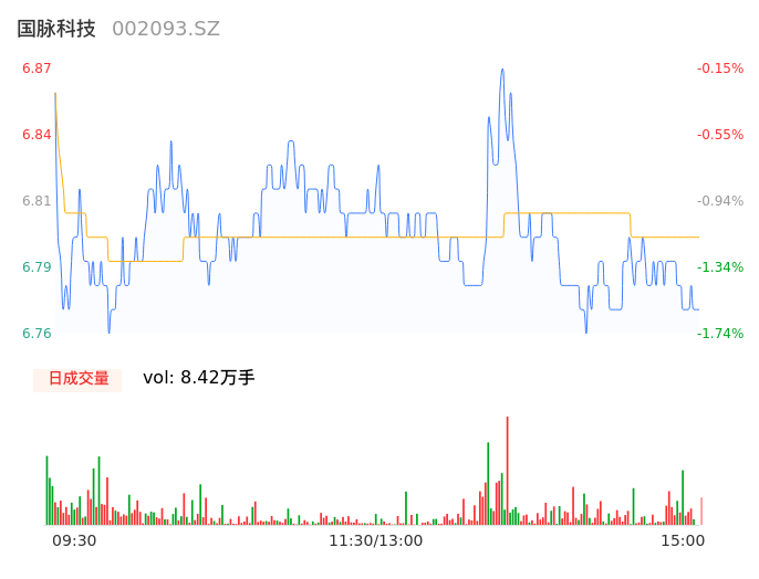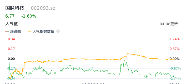 04月08日,国脉科技收报6.77,股价涨幅-1.60%,成交金额5727.92万元,换手率0.84%。