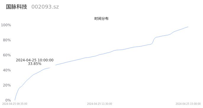 根据成交分布分析,该股票当天缩量成交,成交清淡。时间上看,早盘前半小时成交量占据当天总成交量的33.85%;价格上看,成交呈现中间峰。成交分布分析主要研究股票成交的分布特性,不具有预测功能,请知悉。