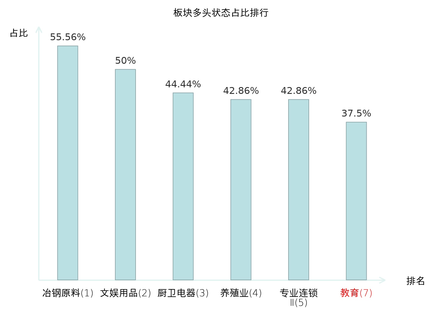 全市场所有行业板块中主力多头状态占比排名中,冶钢原料板块位居第一。能源金属板块名次提升最快,较昨日上升48位。
