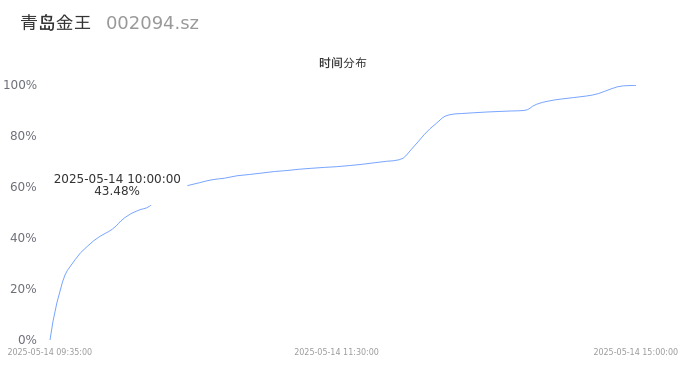 002094青岛金王2025年05月14日成交365.21万手,成交金额31.25亿,相较昨日放量172.95万手,换手率52.89%,成交活跃。