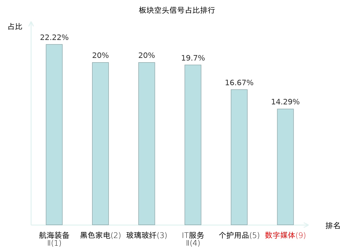 全市场所有行业板块中主力空头信号占比排名中,航海装备Ⅱ板块位居第一。纺织制造板块名次提升最快,较昨日上升107位。