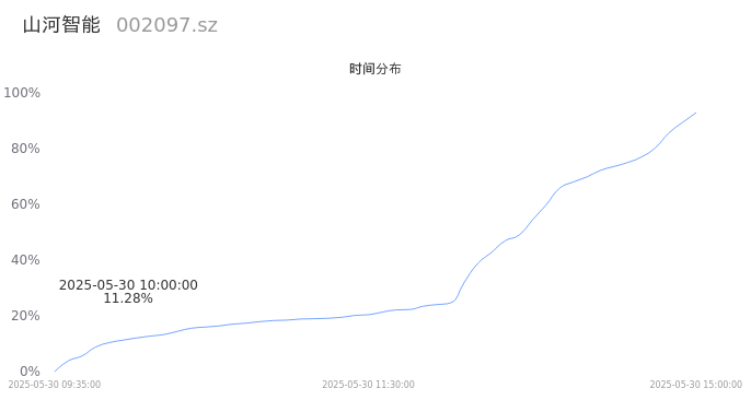 002097山河智能2025年05月30日成交52.14万手,成交金额3.93亿,相较昨日放量30.03万手,换手率4.86%,成交清淡。