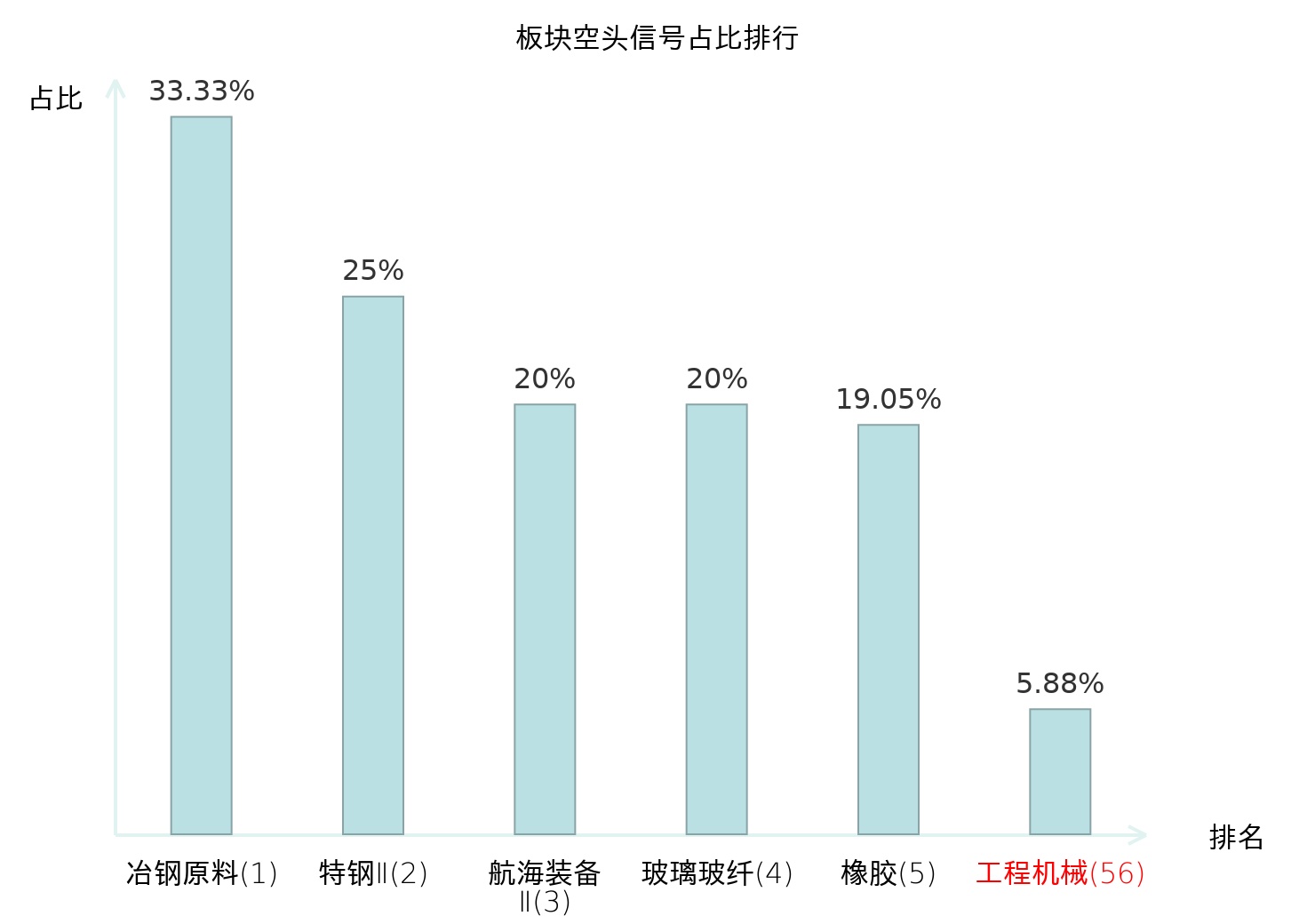 全市场所有行业板块中主力空头信号占比排名中,冶钢原料板块位居第一。军工电子Ⅱ板块名次提升最快,较昨日上升98位。