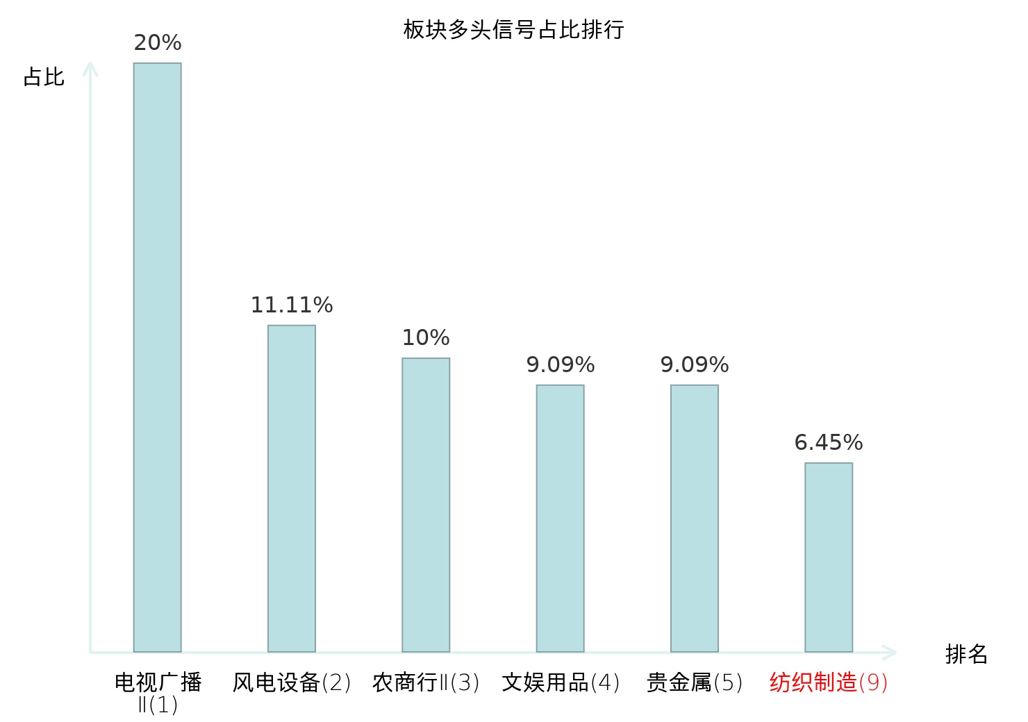 全市场所有行业板块中主力多头信号占比排名中,电视广播Ⅱ板块位居第一。农商行Ⅱ板块名次提升最快,较昨日上升112位。