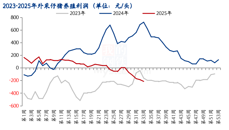 Choice数据监测显示,截至8月21日,全国生猪均价跌至13.72元/公斤,其中大部分省份已跌入6元单斤区间。另据上海钢联监测数据显示,外采仔猪养殖利润目前为近三年同期最低,且已处于亏损状态。