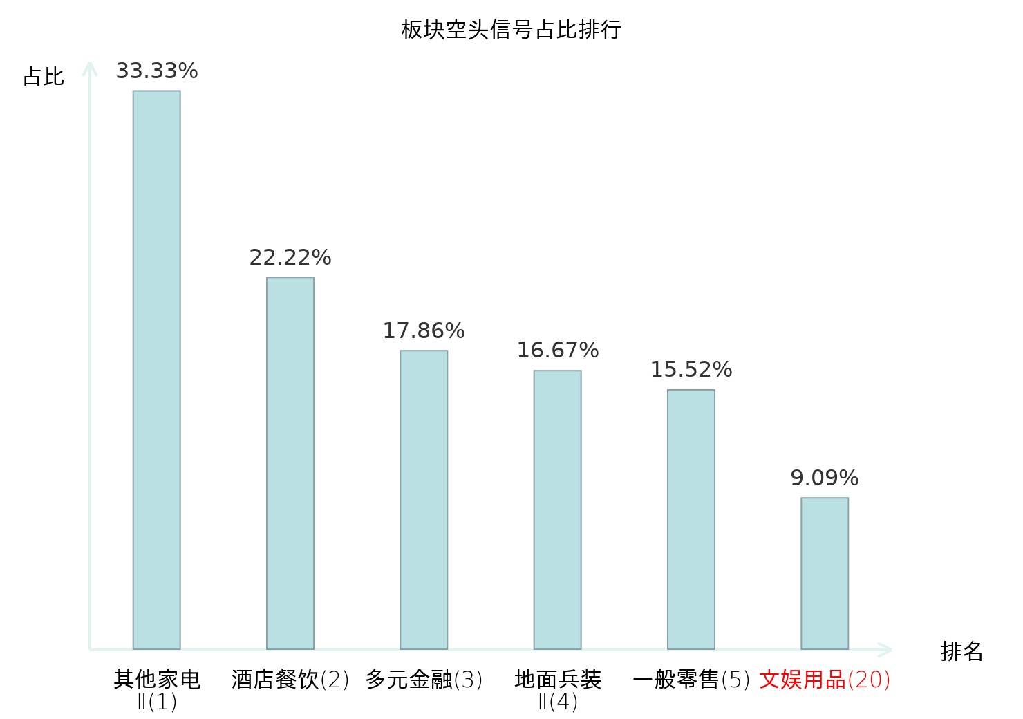 全市场所有行业板块中主力空头信号占比排名中,其他家电Ⅱ板块位居第一。广告营销板块名次提升最快,较昨日上升111位。