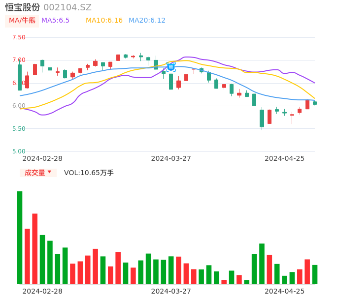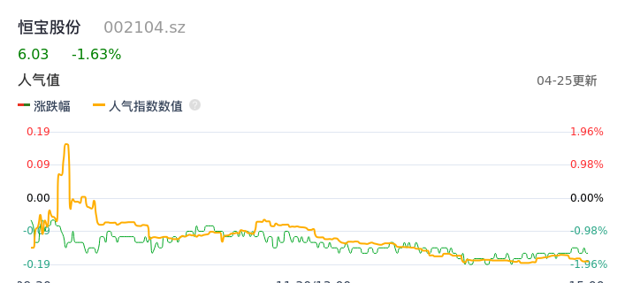 04月25日,恒宝股份收报6.03,股价涨幅-1.63%,成交金额6442.01万元,换手率1.80%。