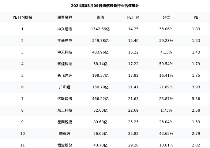 恒宝股份最新报告期数据为一季度,下表汇总了通信设备行业内市值靠前的公司一季度主要经营数据