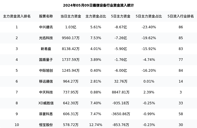 从主力资金流向来看,通信设备行业今日主力资金流入78.84亿元,在所有申万二级行业中排名:26/131。